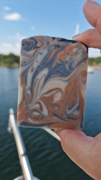 Observera att då våra tvålar är handgjorda kan de variera i form storlek och utseende.  Ansiktstvål Shea gör vi i flera olika mönsterkombinationer så här kan den tvål du köper se väldigt annorlunda ut än den du köpt tidigare. Mängden av alla ingredienser är dock alltid desamma.